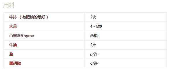 熱鍋,入油,一定要高溫冒一點(diǎn)煙的時(shí)候入牛排。同時(shí)放入大蒜和百里香
